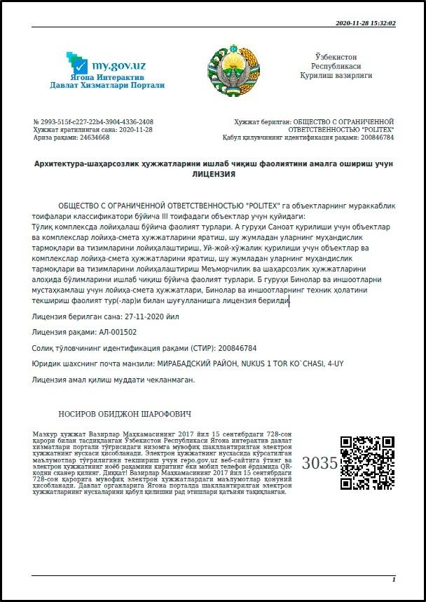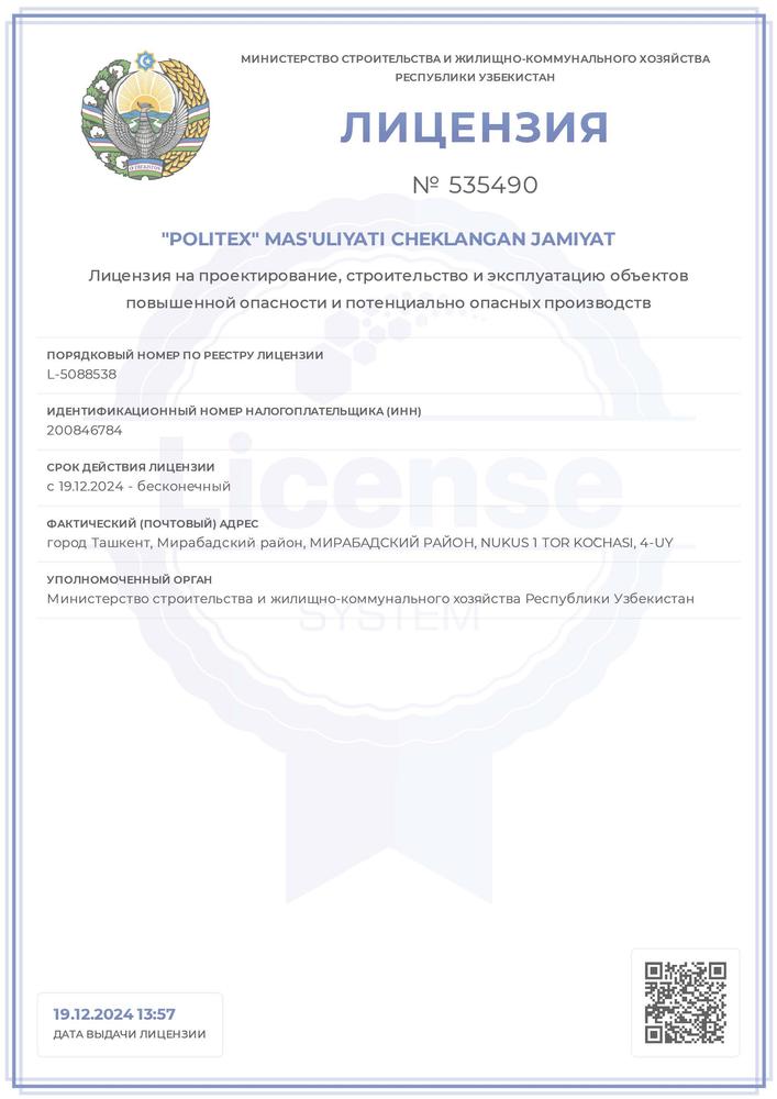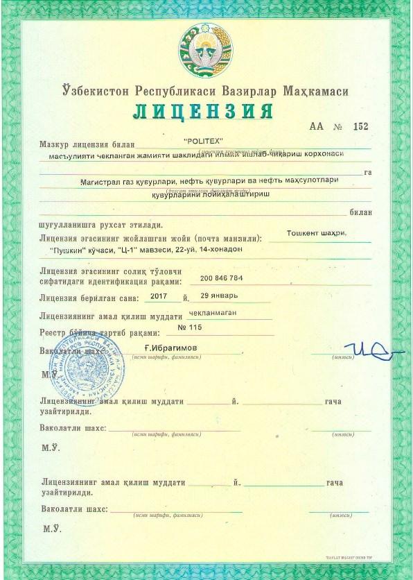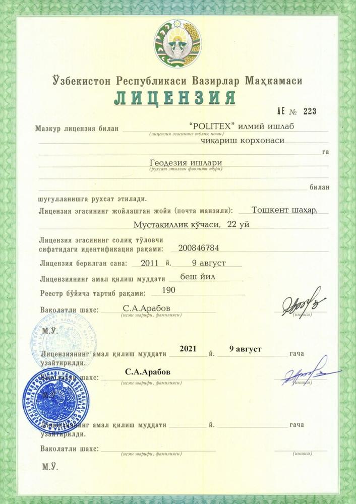 На все вышеперечисленные виды работ, ООО НПП POLITEX имеет соответствующие лицензии Кабинета Минист…