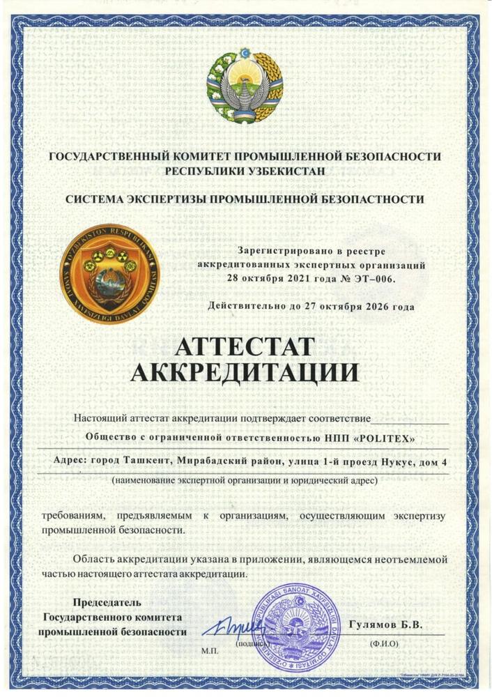 Аттестат Аккредитации "Госкомпромбез РУз"
